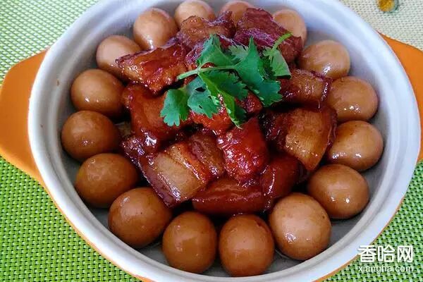 五花肉500克、鹌鹑蛋200克、大料适量、桂皮适量、葱姜蒜适量、老抽一汤匙、生抽一汤匙、冰糖20克、鸡精适量、香油适量、干红辣椒适量、盐适量