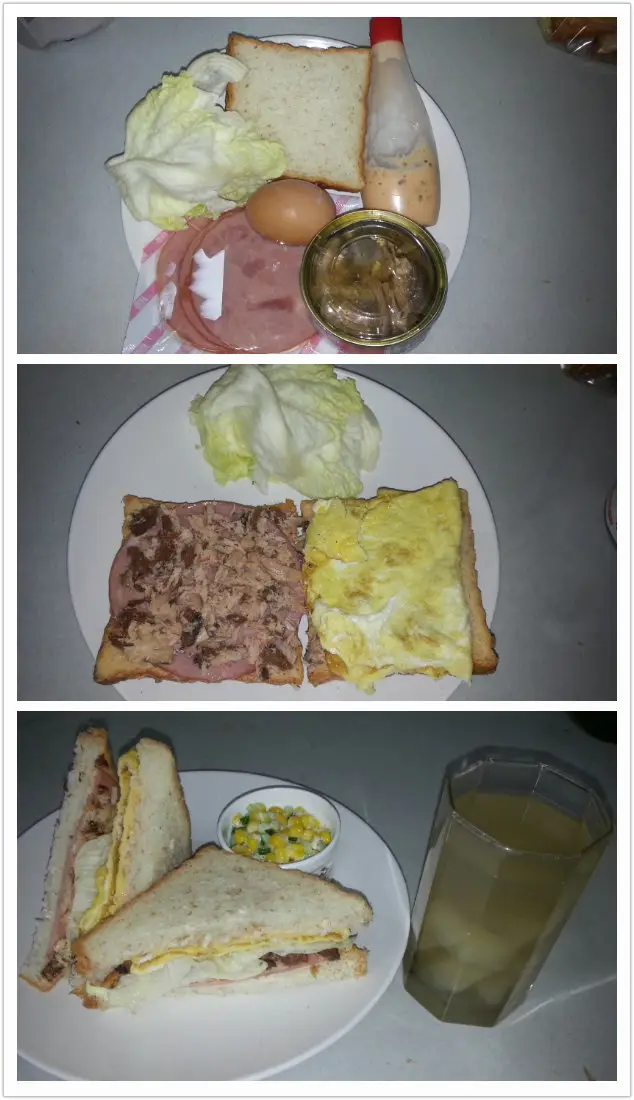 第7天、火腿鸡蛋三明治+玉米沙拉+煮梨水