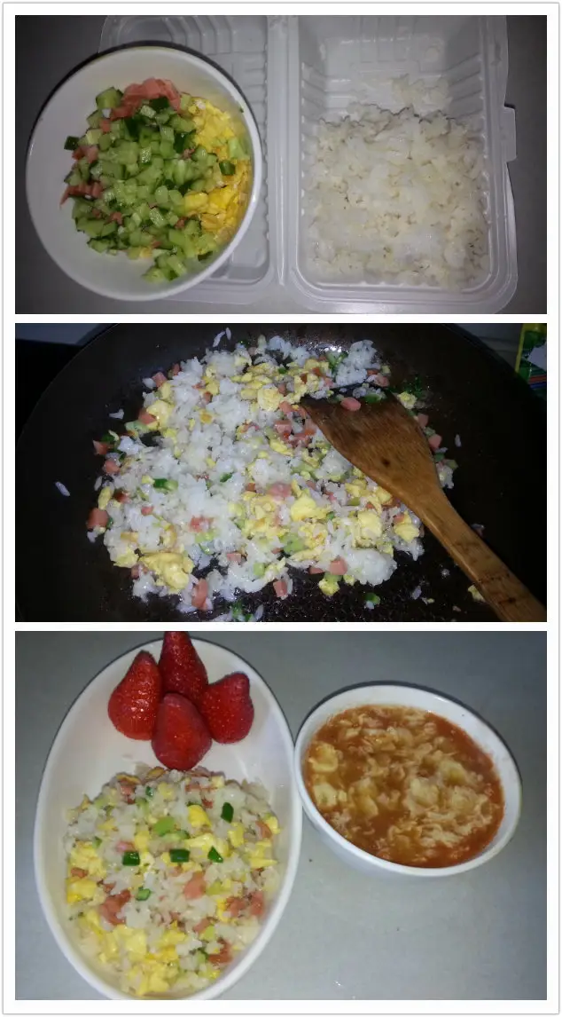 第5天、五彩炒饭+番茄鸡蛋汤+草莓