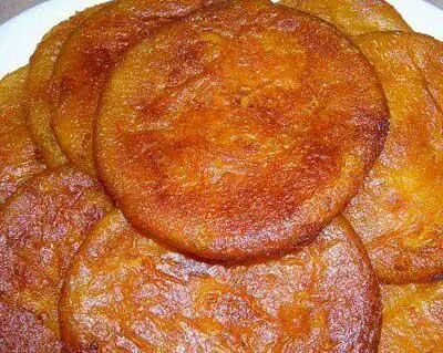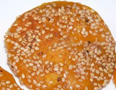 3、烧热油镬,放入适量生油,分2次饼放进镬内,煎至呈浅金黄色,再翻另一面,至两面同一色泽,起镬倒在笊篱里,滤去油分,上碟。