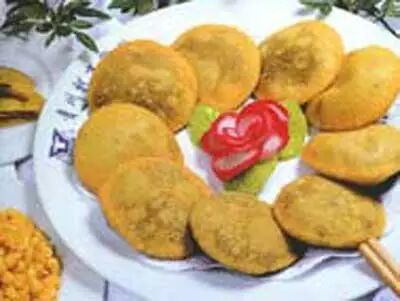 4、平锅烧热,淋油,把小饼摆在锅内,用慢火将两面反复煎,待饼鼓起时即熟