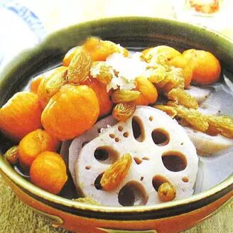 材料: 莲藕 750g,栗子 20个 ,葡萄干 1/3杯 (可有可无)